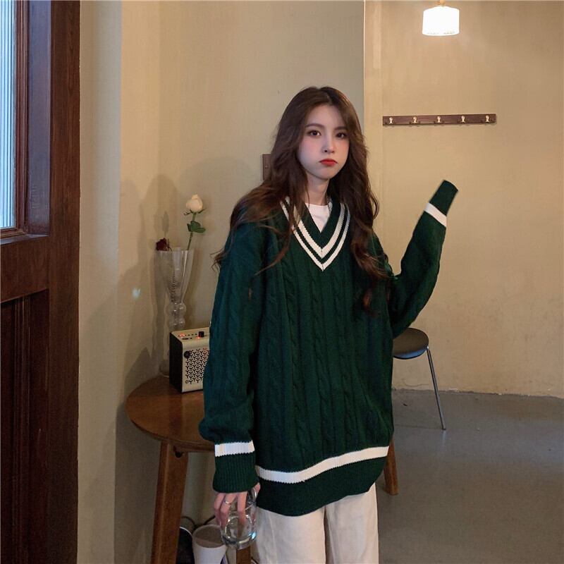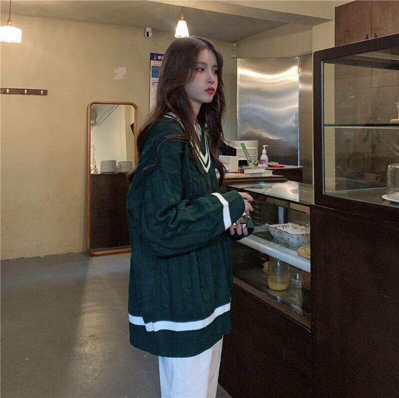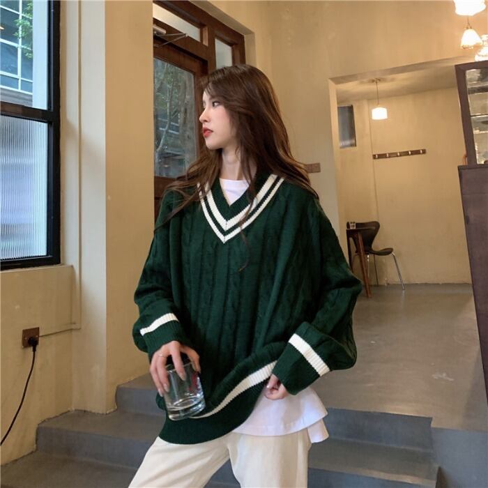 ✞甘めカレッジカラーVネックオーバーサイズセーター プルオーバー ジャケット ロングスリーブ 秋冬✞ゴスロリ SM ミリ 甘ロリ クラロリ 和ロリ エレガント 黒ロリ 姫ロリ 華ロリ BB-BB9008176466