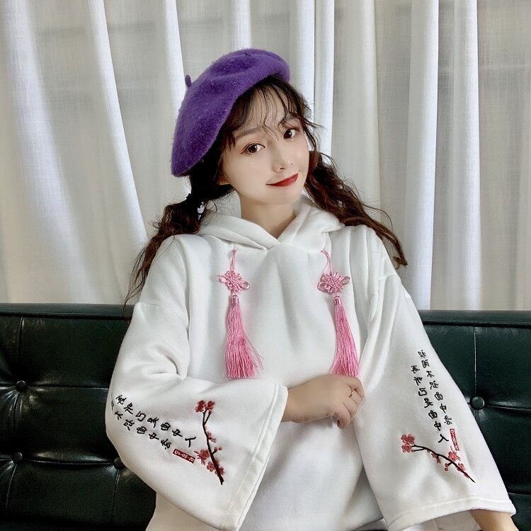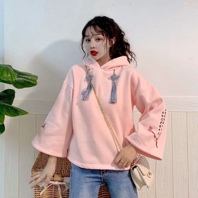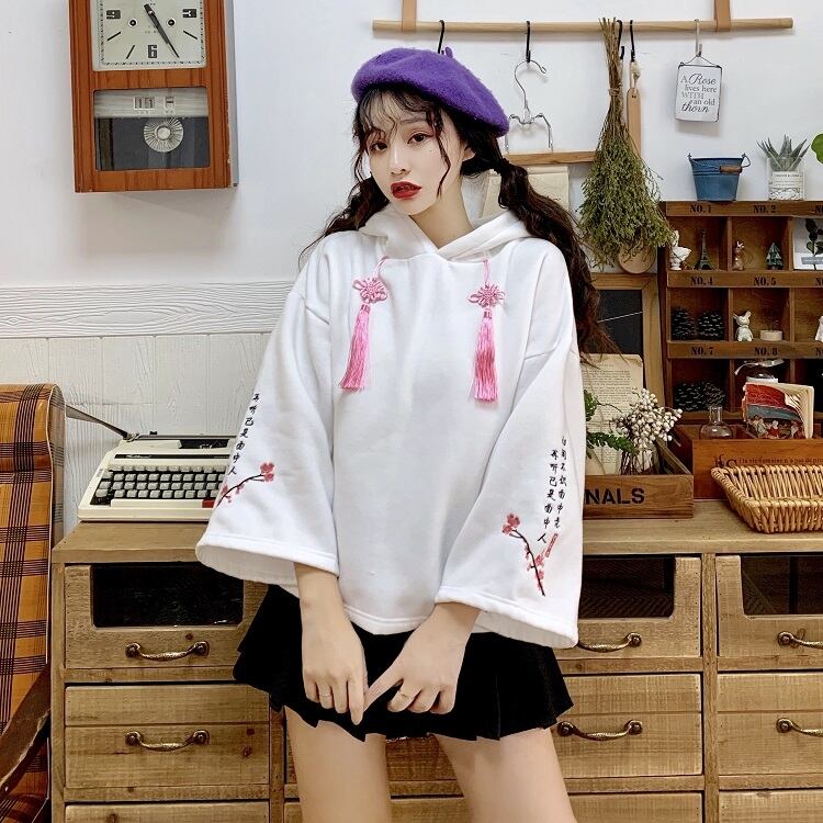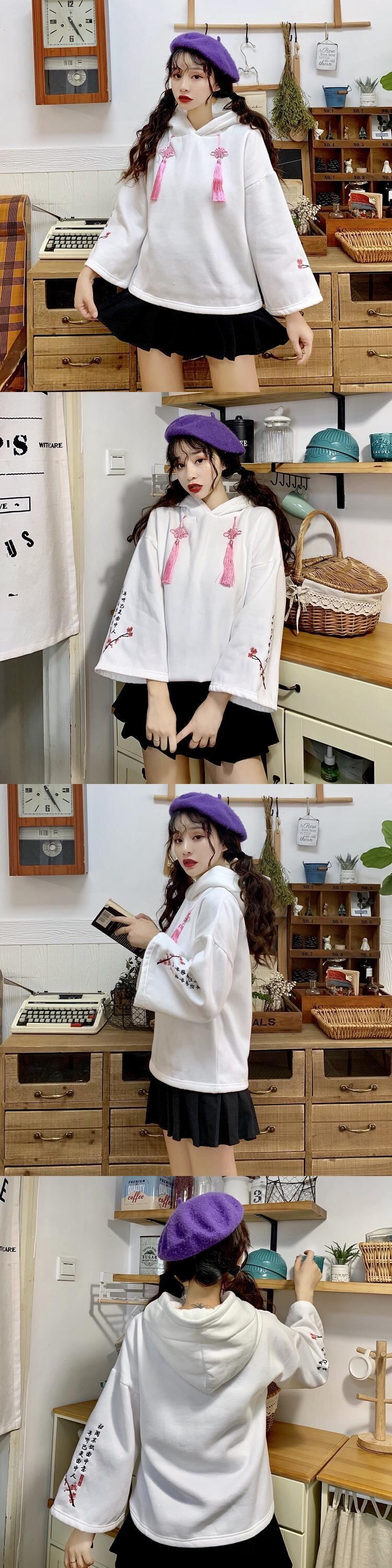 ✞中華ロリータ刺繍フーディーパフスリーブ ベルベット フード ロングセーター 大人女子☆ウィンター レトロ 長袖 冬物 ✞ゴスロリ SM ミリ 甘ロリ クラロリ 和ロリ エレガント 黒ロリ 姫ロリ 華ロリ BB-BB93402050003