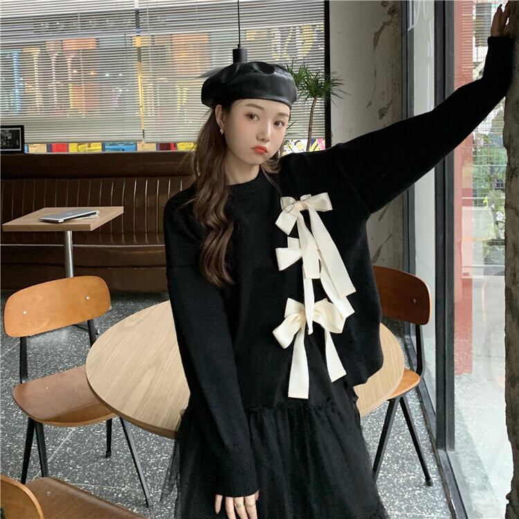 ✞ロリりぼんセーターニットトップス 大人女子☆ウィンター スウィート ガーリー 秋冬✞ゴスロリ SM ミリ 甘ロリ クラロリ 和ロリ エレガント 黒ロリ 姫ロリ 華ロリ BB-BB97198167215