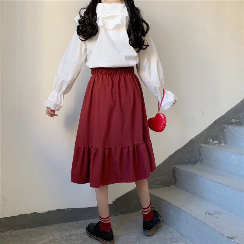 ✞ハイウェストラッフルフリルスカート ウィンター大人女子☆ スウィート ガーリー 秋冬✞ゴスロリ SM ミリ 甘ロリ クラロリ 和ロリ エレガント 黒ロリ 姫ロリ 華ロリ BB-BB38061065958