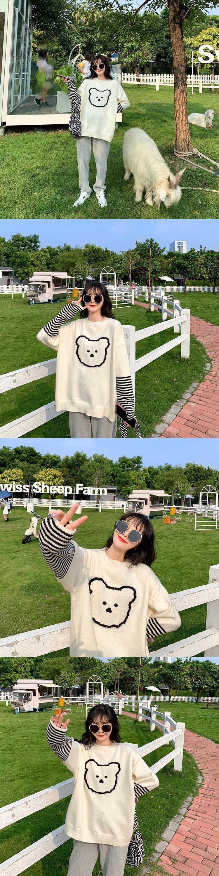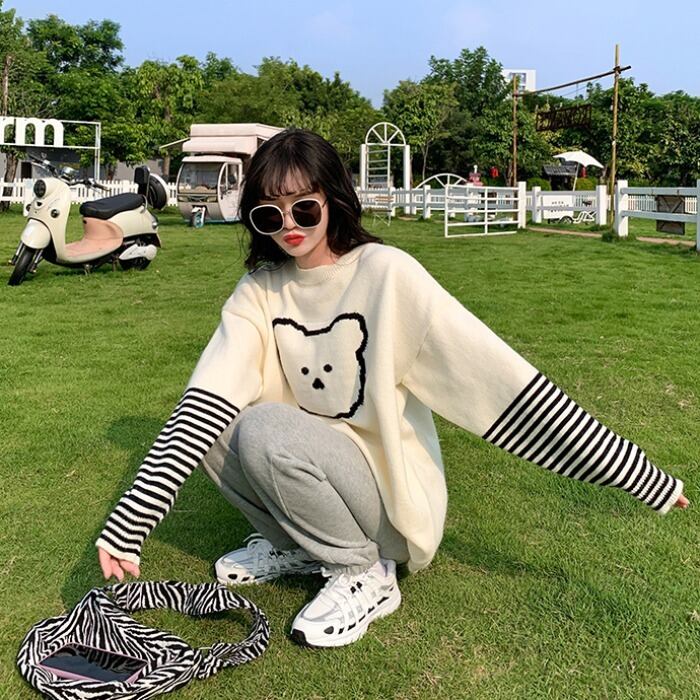 ✞くまちゃんストライプロングスリーブ セーター ニット ガーリー 秋冬✞ゴスロリ SM ミリ 甘ロリ クラロリ 和ロリ エレガント 黒ロリ 姫ロリ 華ロリ BB-BB96701208296