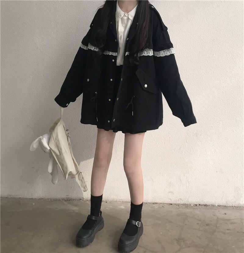 ✞ダークフリルブルゾン ジャケット ウィンター ロングスリーブ カーディガントップス 秋冬✞ゴスロリ SM ミリ 甘ロリ クラロリ 和ロリ エレガント 黒ロリ 姫ロリ 華ロリ BB-BB20227458166