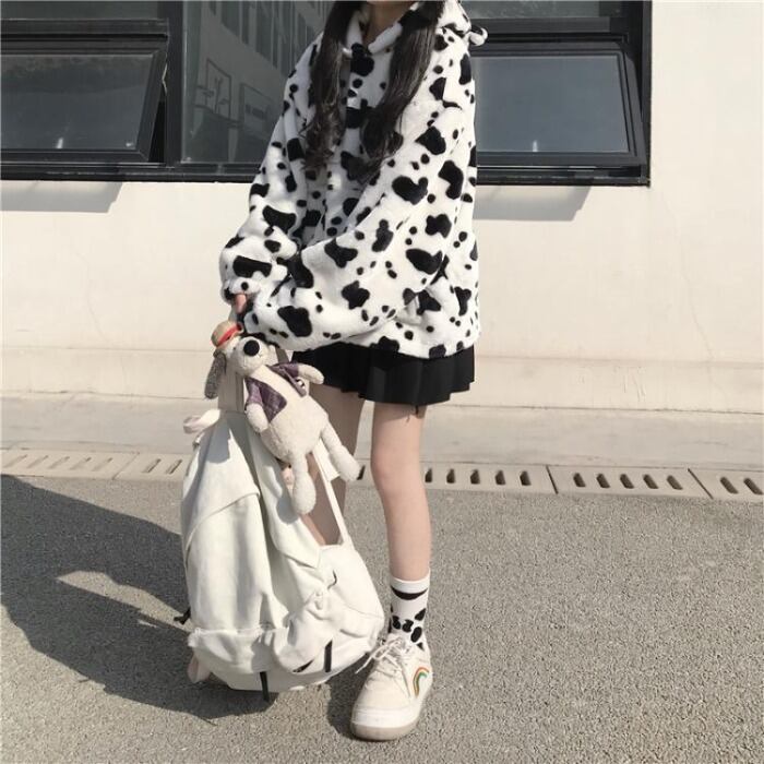 ✞牛柄パターンフーディープルオーバー セーター カジュアルトップス ガーリー ウィンター 秋冬✞ゴスロリ SM ミリ 甘ロリ クラロリ 和ロリ エレガント 黒ロリ 姫ロリ 華ロリ BB-BB75347137605