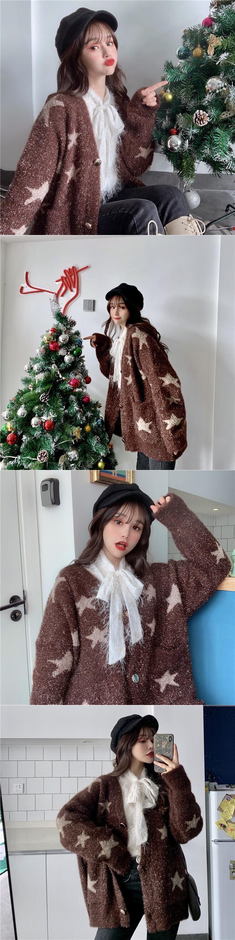 ✞ ジャカード星カーディガンセーター or りぼんシャツブラウス ジャケット ウィンター ガーリー 秋冬✞ゴスロリ SM ミリ 甘ロリ クラロリ 和ロリ エレガント 黒ロリ 姫ロリ 華ロリ BB-BB42219084424