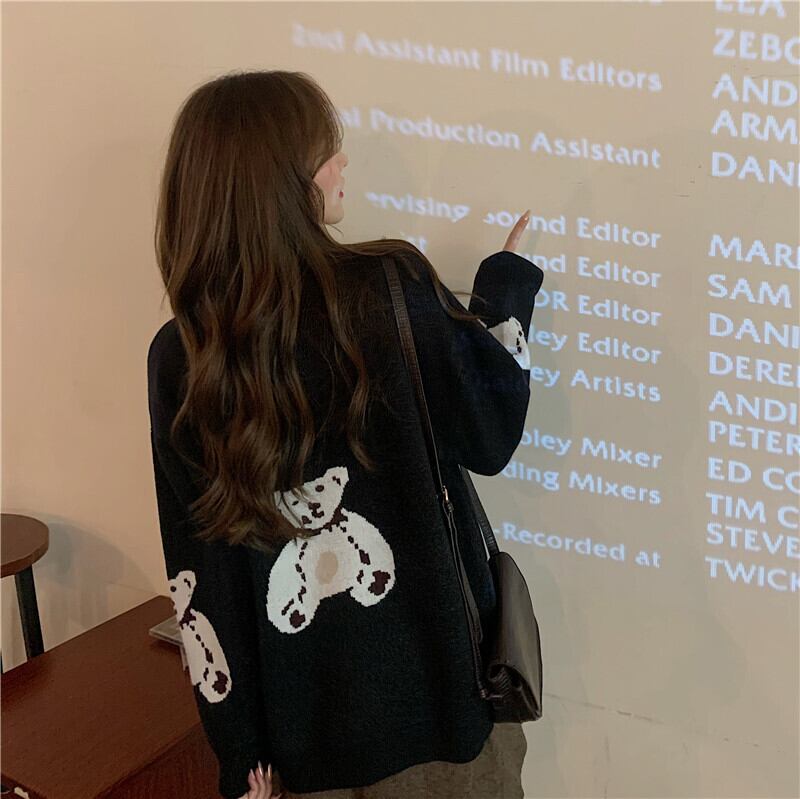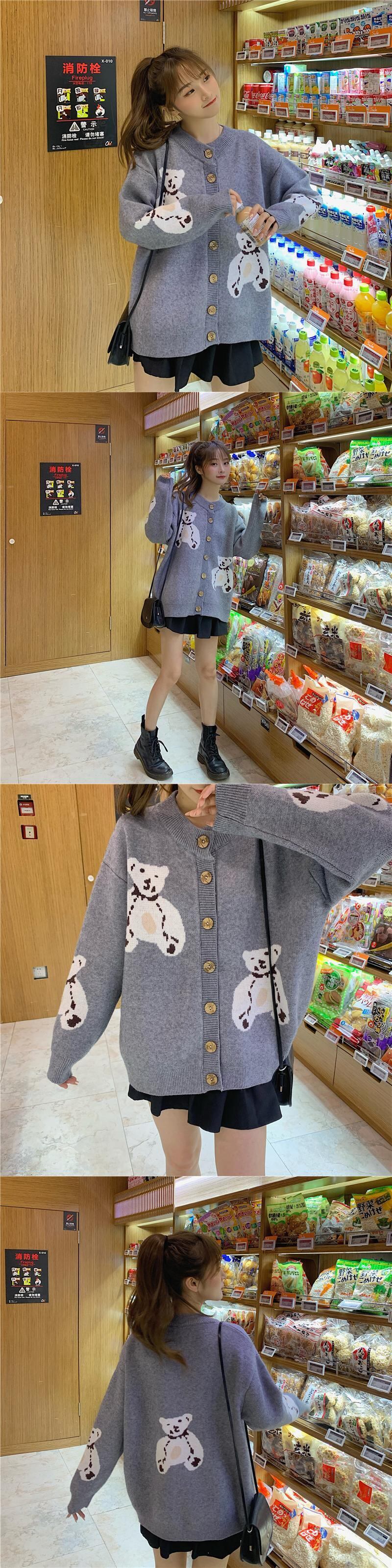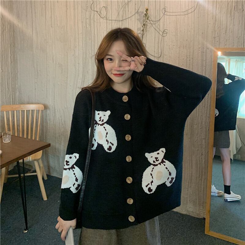 ✞くまちゃんラウンドネックニットカーディガンセーター ジャケット 大人女子☆ウィンター ロング ガーリー 秋冬✞ゴスロリ SM ミリ 甘ロリ クラロリ 和ロリ エレガント 黒ロリ 姫ロリ 華ロリ BB-BB73379537499