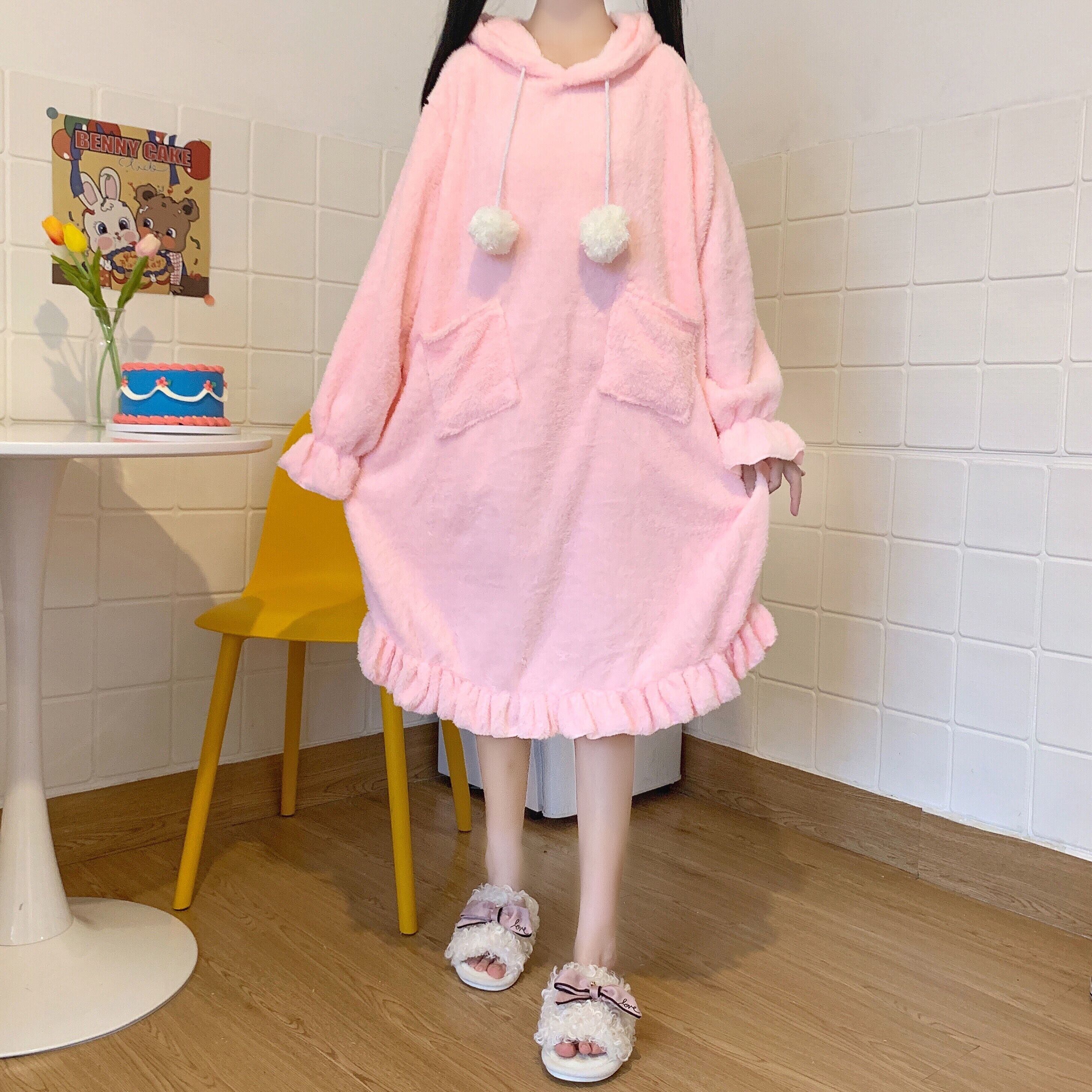 ✞ナイトフーディーワンピース 室内着 大人女子☆ウィンタースカート パジャマ ガーリー 秋冬✞ゴスロリ SM ミリ 甘ロリ クラロリ 和ロリ エレガント 黒ロリ 姫ロリ 華ロリ BB-BB84030570026