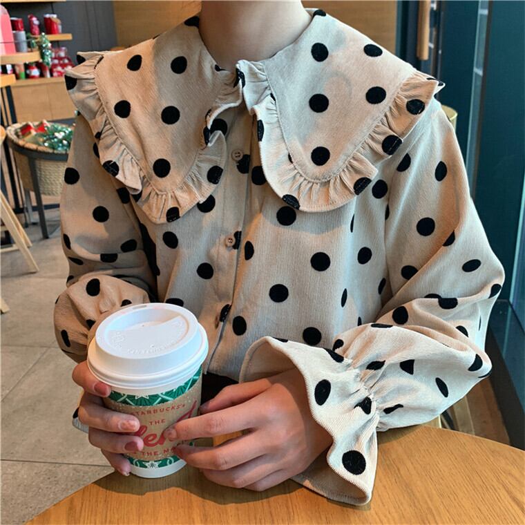 ✞水玉シャツブラウス ウィンター 長袖スリーブ パフスリーブ ロング レトロ ガーリー 秋冬✞ゴスロリ SM ミリ 甘ロリ クラロリ 和ロリ エレガント 黒ロリ 姫ロリ 華ロリ BB-BB24265283189