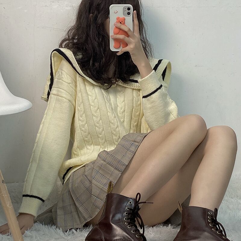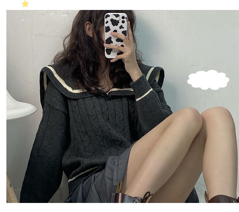 ✞襟ニットセーター プルオーバー 大人女子 トップス ウィンター レトロ 秋冬✞ゴスロリ SM ミリ 甘ロリ クラロリ 和ロリ エレガント 黒ロリ 姫ロリ 華ロリ BB-BB69554738784
