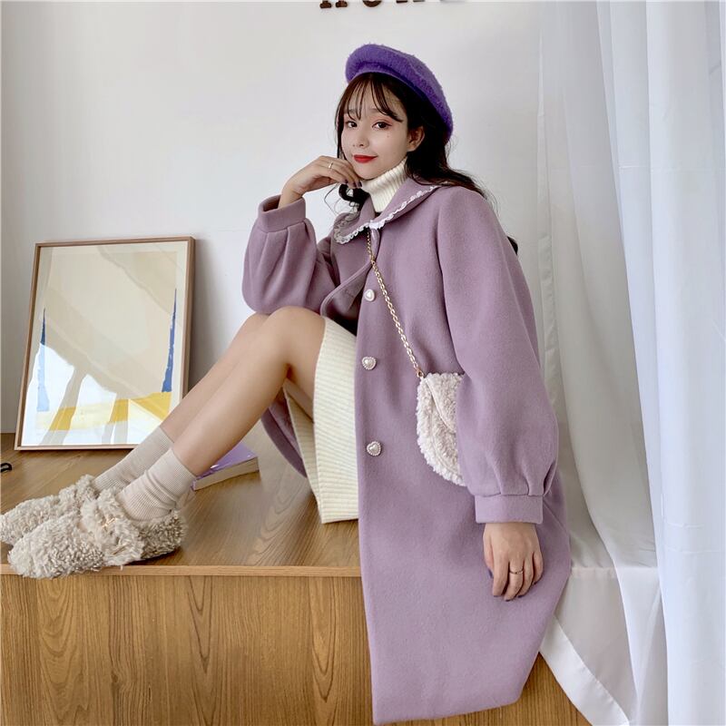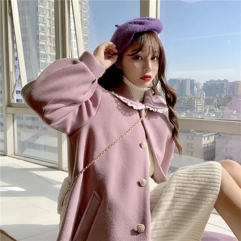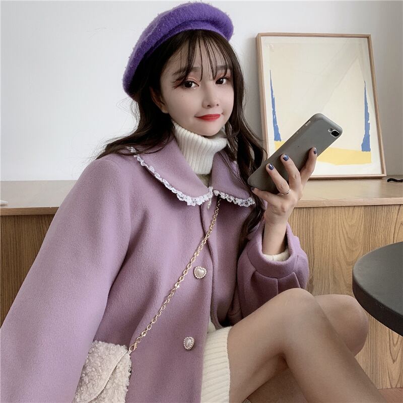 ✞甘めロリータレースフリル襟コート ランタンスリーブ ウィンター スウィート 秋冬 パープル ✞ゴスロリ SM ミリ 甘ロリ クラロリ 和ロリ エレガント 黒ロリ 姫ロリ 華ロリ BB-BB99355072175