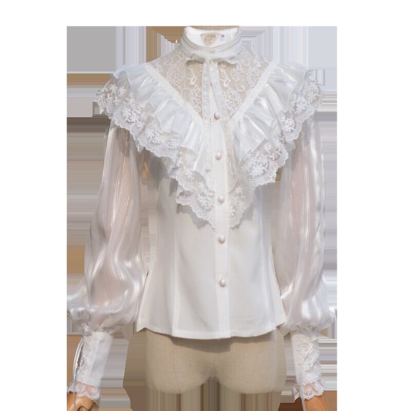 ✞レトロ総レースチュールブラウススリム 黒フリルブラウス ホワイト 白✞✝✞ ゴスロリ SM ミリ 甘ロリ クラロリ 和ロリ エレガント 黒ロリ 姫ロリ 華ロリ 春 夏服 秋服 冬服 CC-CC9203272