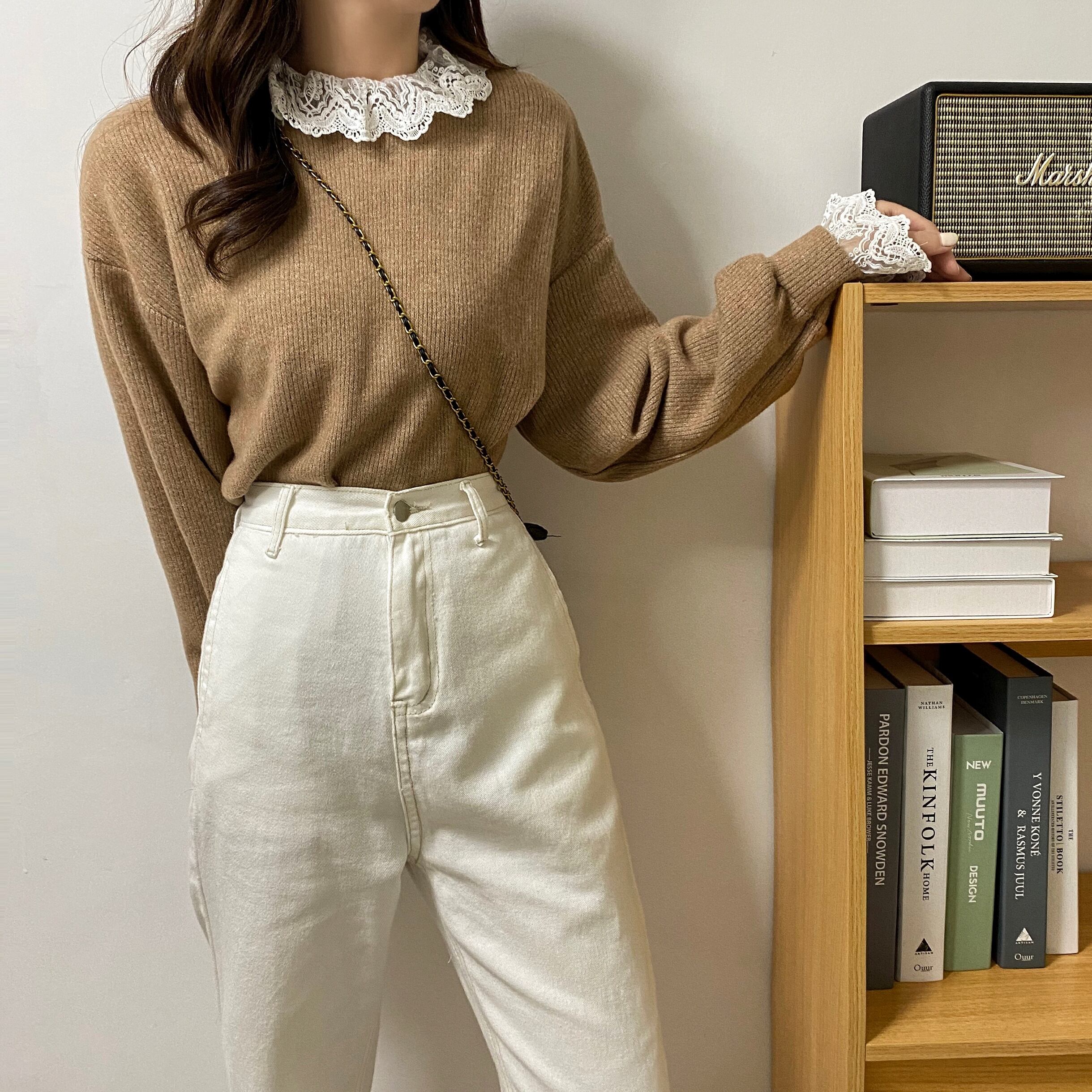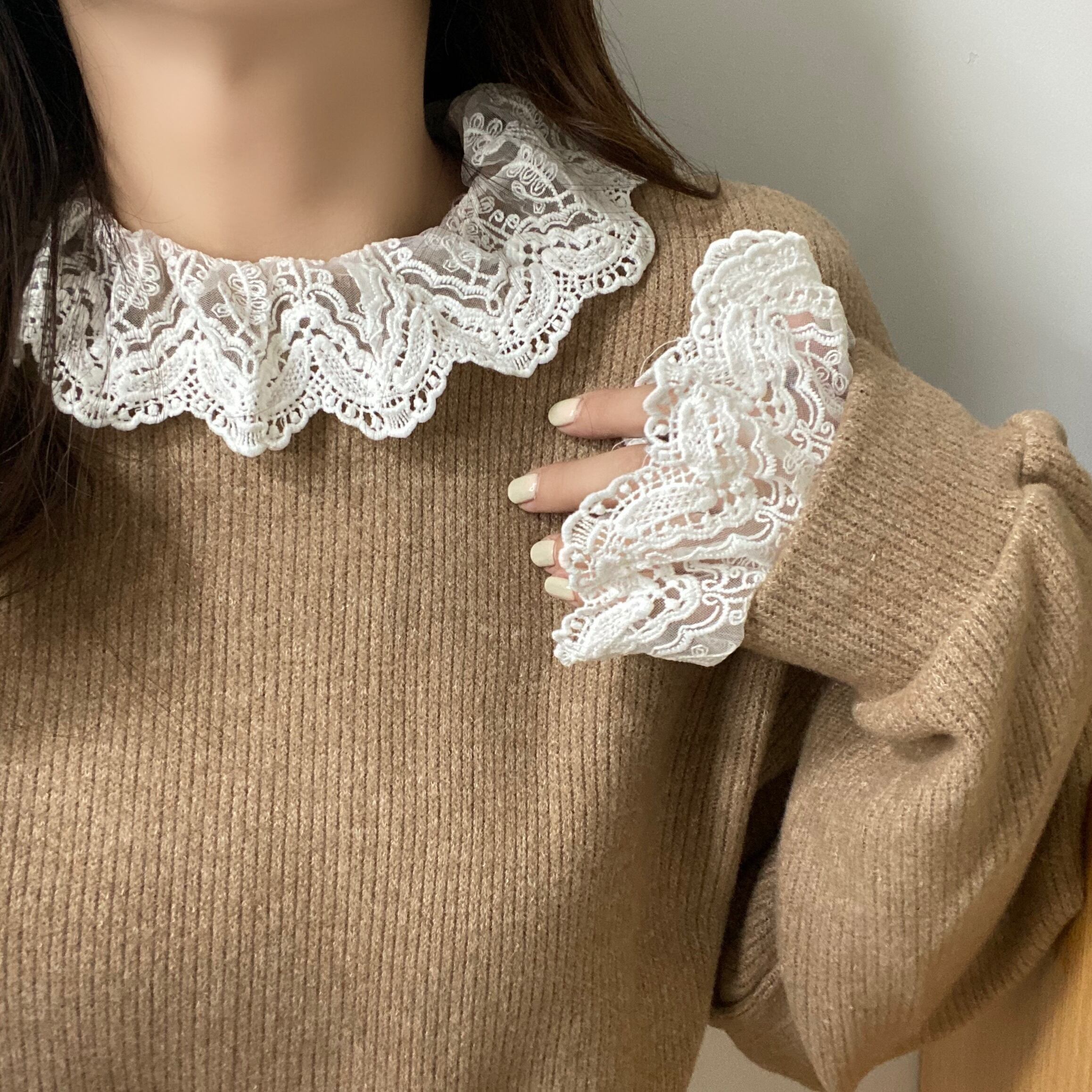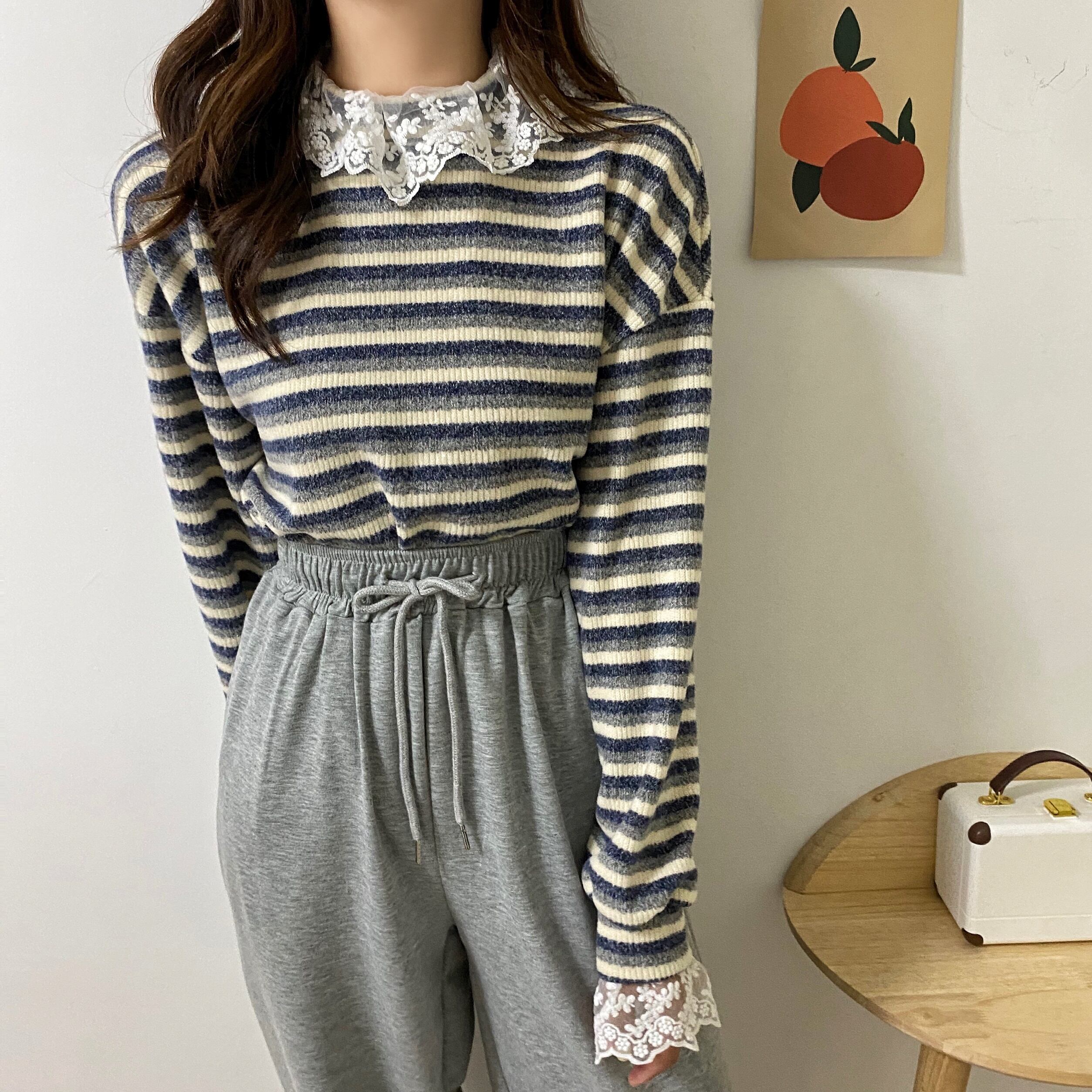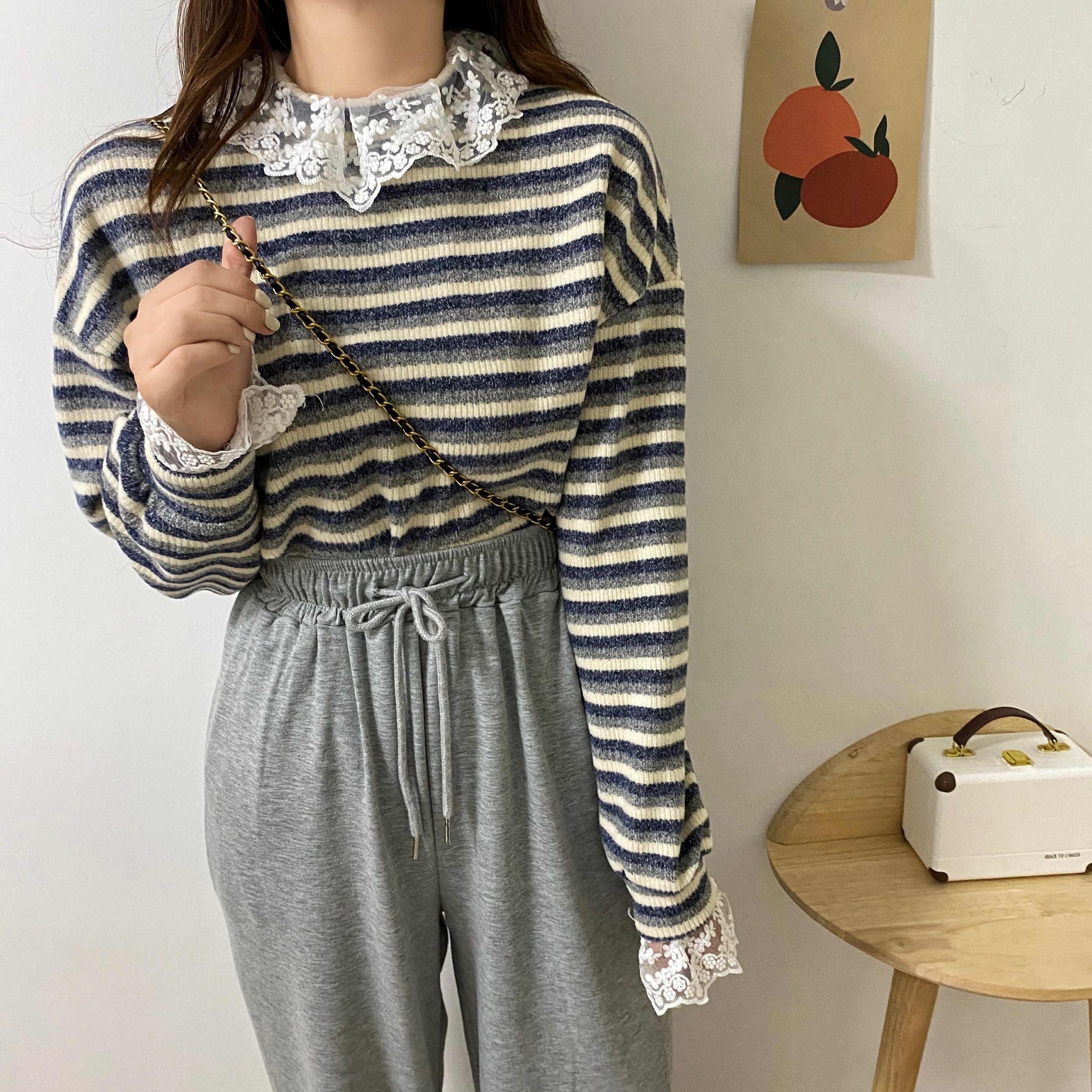 ✞甘めレース袖ストライプニットトップス 大人女子☆ ロング レトロ 秋物 冬物 オータムウィンター♡ステッチ ✞ゴスロリ SM ミリ 甘ロリ クラロリ 和ロリ エレガント 黒ロリ 姫ロリ 華ロリ BB-BB78021692633