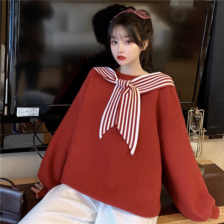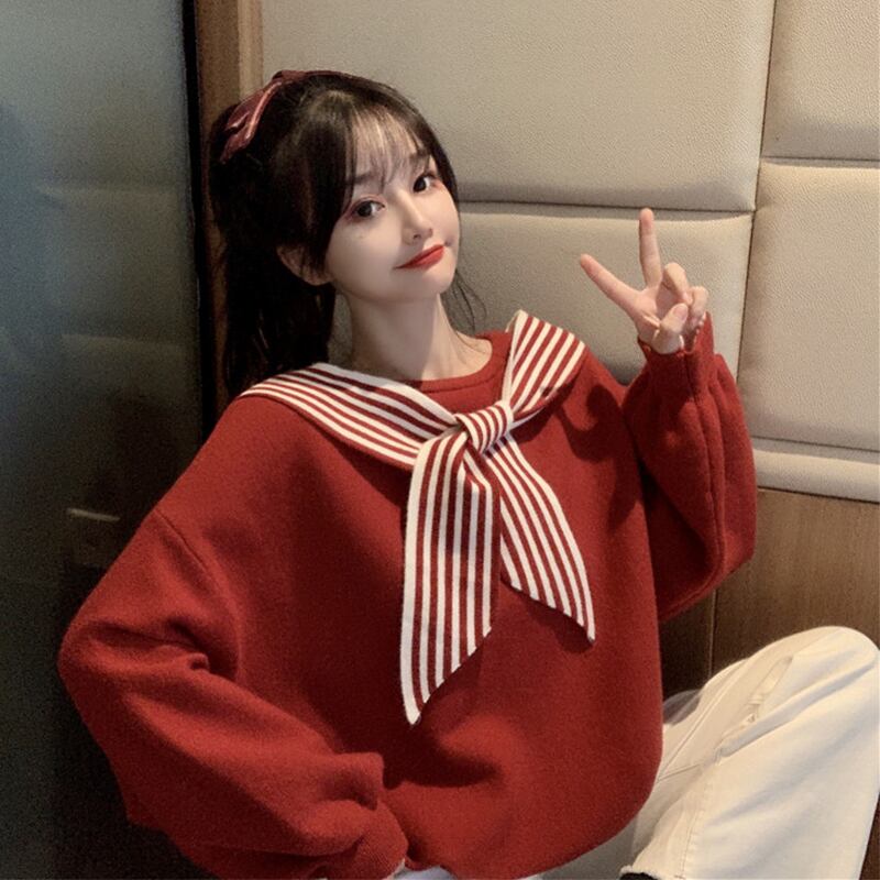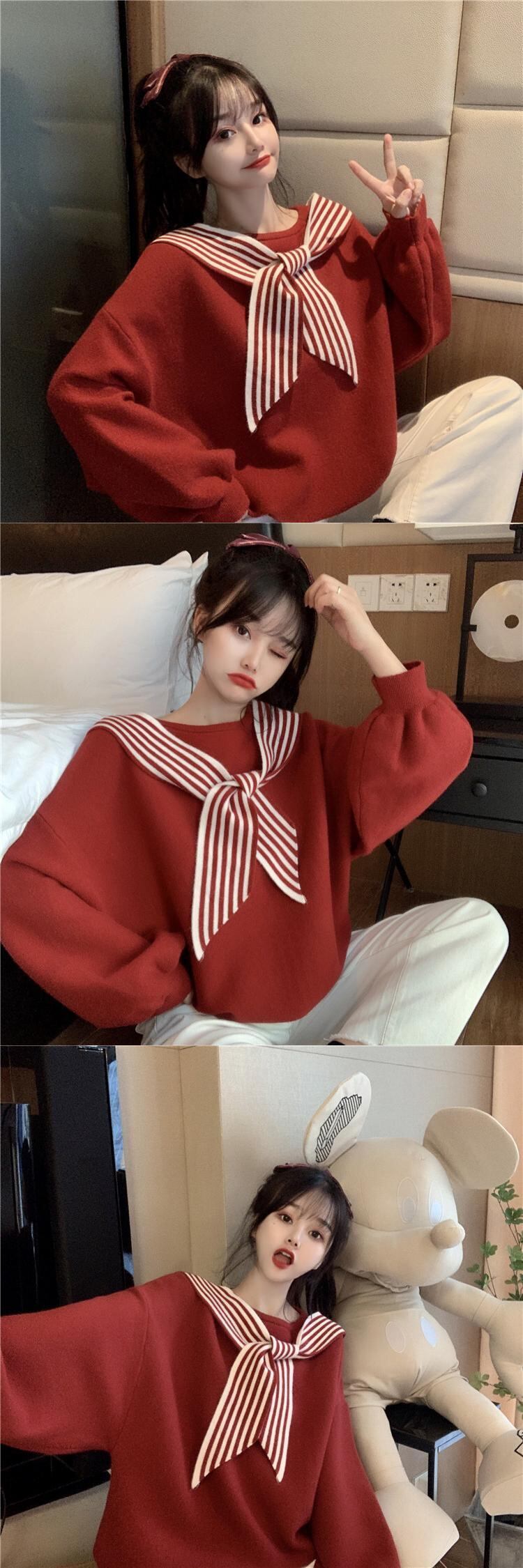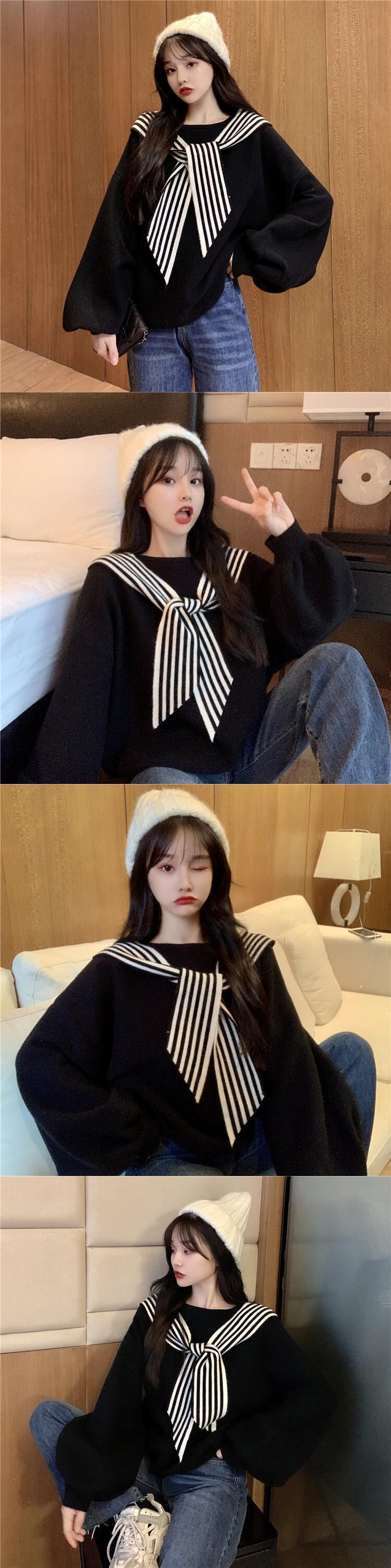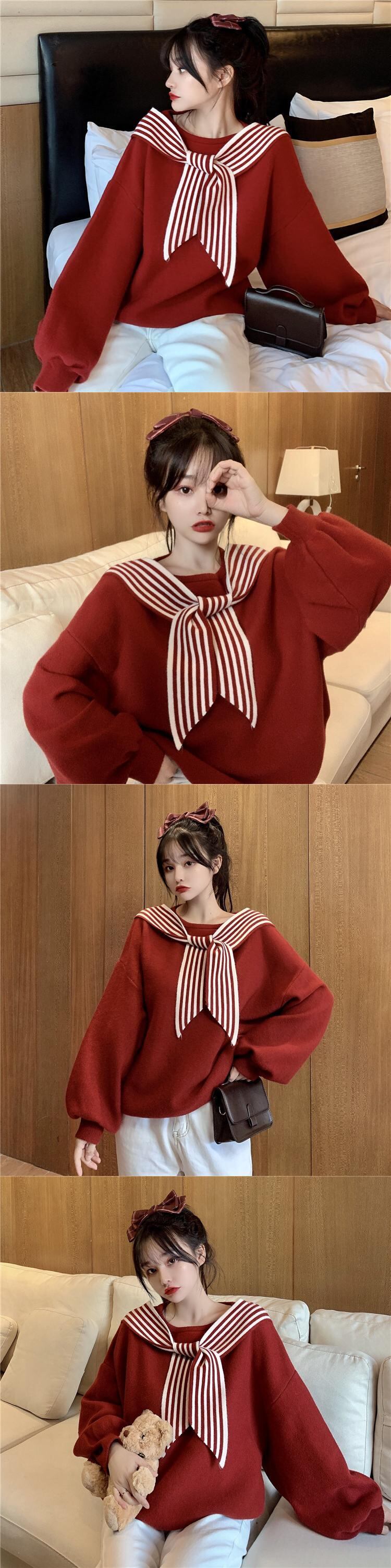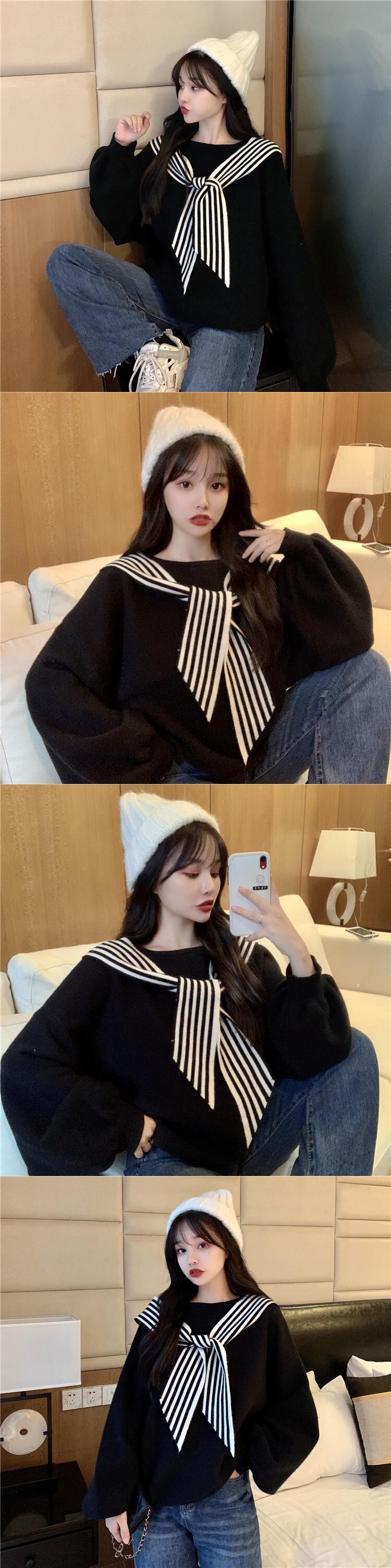 ✞甘めスカーフラウンドネックプルオーバー ニットセーター オータムウィンター 大人女子☆ ロング 秋物 冬物 シルク ステッチ ✞ゴスロリ SM ミリ 甘ロリ クラロリ 和ロリ エレガント 黒ロリ 姫ロリ 華ロリ BB-BB33434003094
