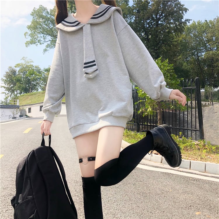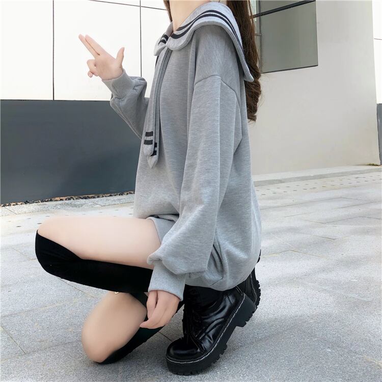 ✞制服 セーラーネクタイ風ロングプルオーバー セーター チュニック トップス 秋冬✞ゴスロリ SM ミリ 甘ロリ クラロリ 和ロリ エレガント 黒ロリ 姫ロリ 華ロリ BB-BB12846107528
