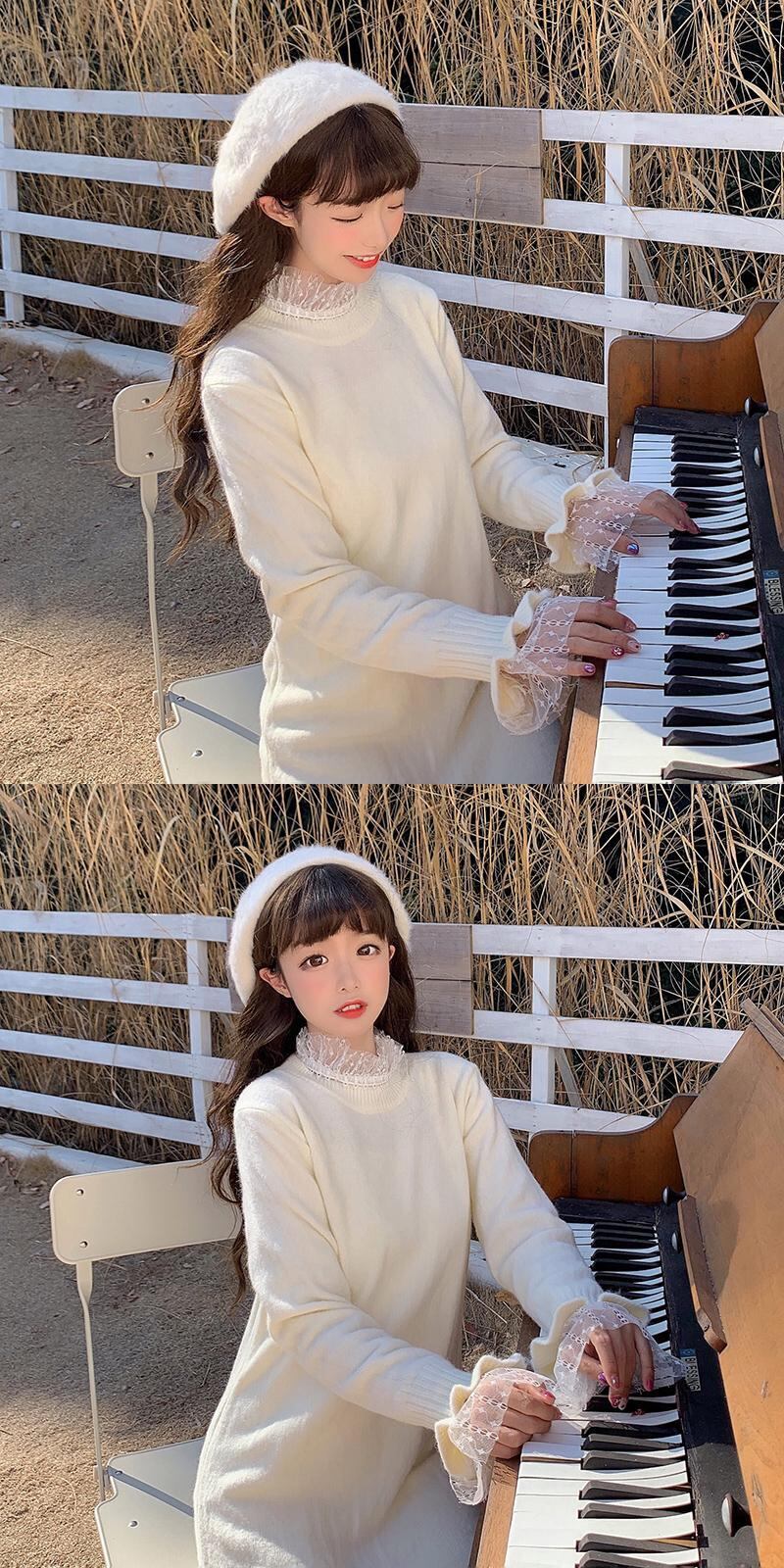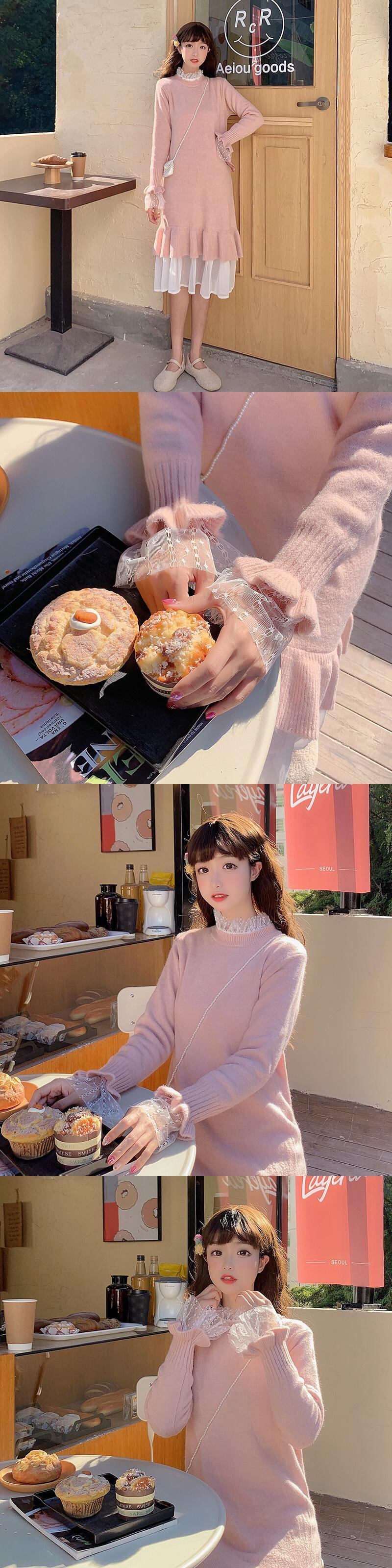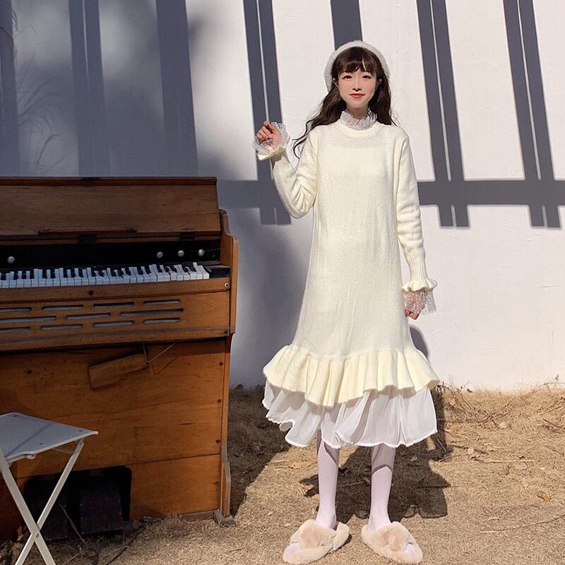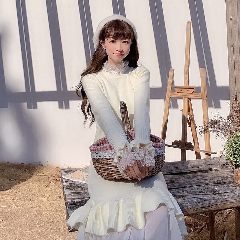 ✞甘めオータムウィンターマーメイドロングセーターフリル マーメイド袖 スウィート ♡秋物 冬物 ステッチ ✞ゴスロリ SM ミリ 甘ロリ クラロリ 和ロリ エレガント 黒ロリ 姫ロリ 華ロリ BB-BB71953369164