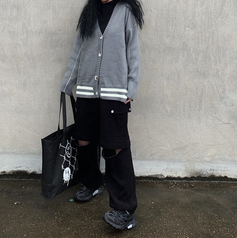 ✞原宿ダークオーバーサイズニットVネックカーディガン おおきめボタン ジャケット ウィンター大人女子☆秋冬 ✞ゴスロリ SM ミリ 甘ロリ クラロリ 和ロリ エレガント 黒ロリ 姫ロリ 華ロリ BB-BB38761673764
