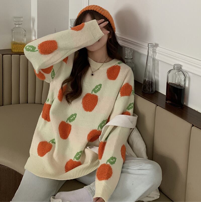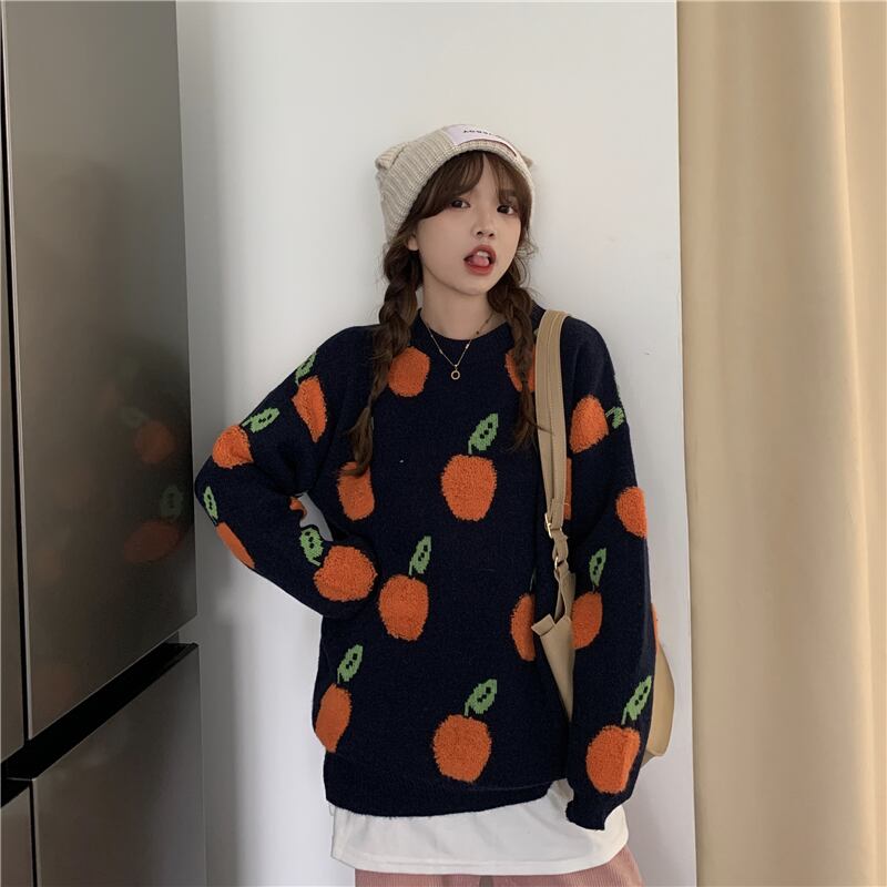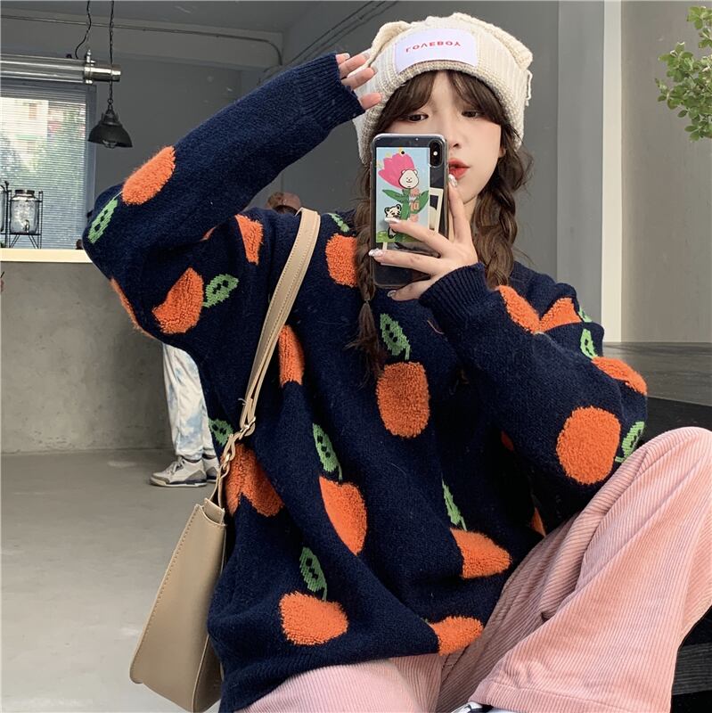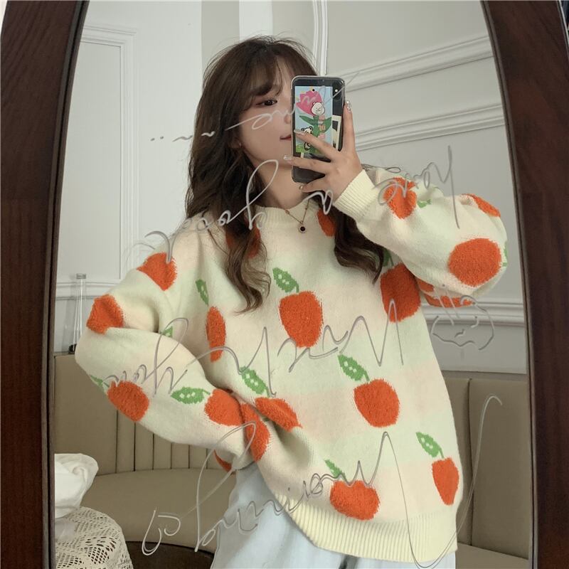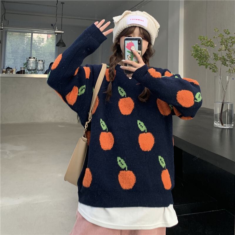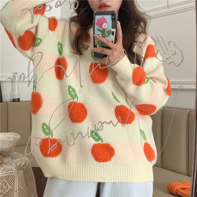 ✞フルーツプリントプルオーバーセーター ニット ジャケット ウィンター大人女子☆秋冬✞ゴスロリ SM ミリ 甘ロリ クラロリ 和ロリ エレガント 黒ロリ 姫ロリ 華ロリ BB-BB17664568616