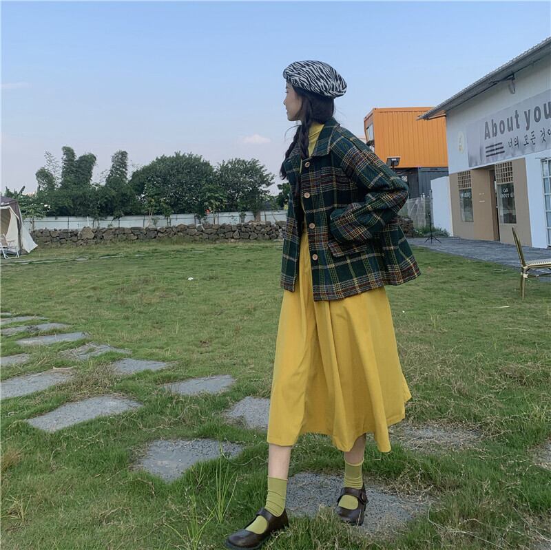✞ボトミングチェック柄シャツ or イエローワンピースドレス スリム シャツブラウス大人女子☆ウィンター 秋冬 ソリッドカラー ✞ゴスロリ SM ミリ 甘ロリ クラロリ 和ロリ エレガント 黒ロリ 姫ロリ 華ロリ BB-BB31823982097