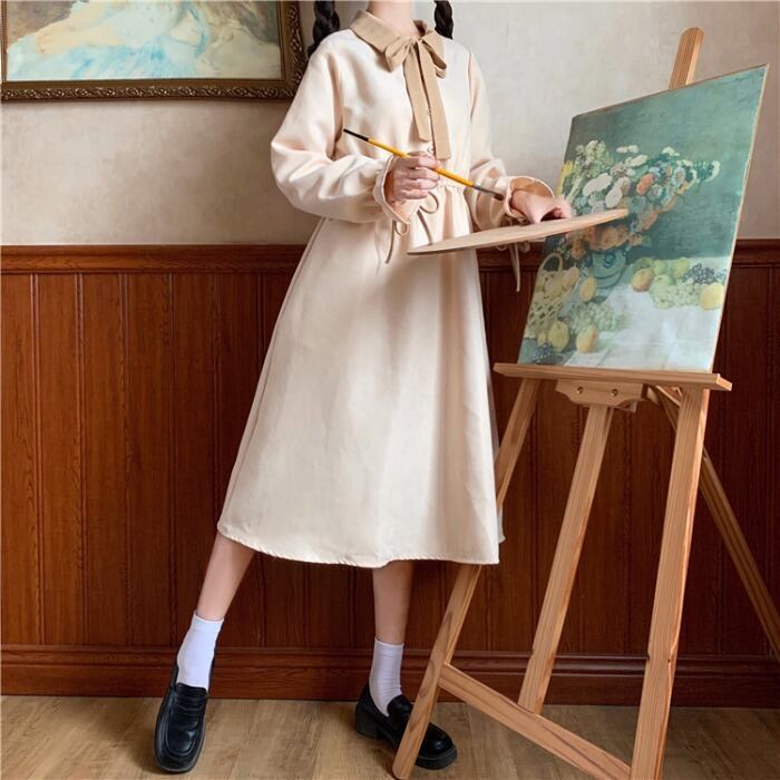 ✞清楚りぼんギャザーハイウエストレースワンピースドレスOP スカート♡ロング 長袖スリーブ スウィート ✞ゴスロリ SM ミリ 甘ロリ クラロリ 和ロリ エレガント 黒ロリ 姫ロリ 華ロリ BB-BB14561123298