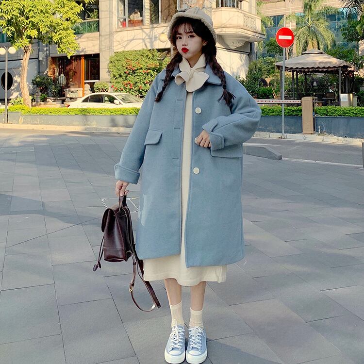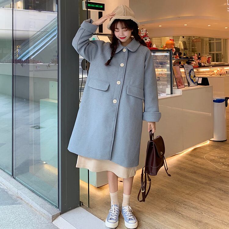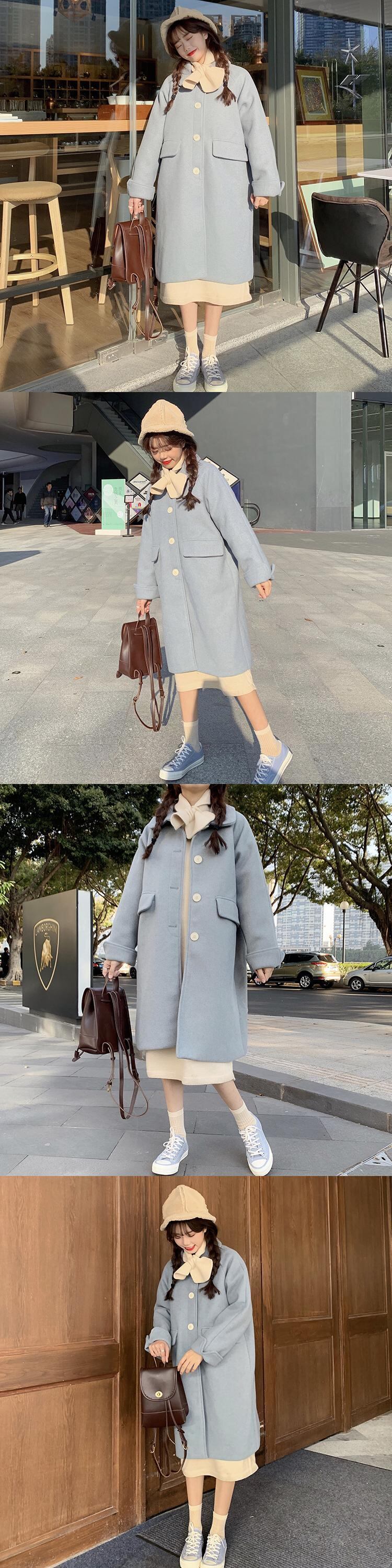 ✞パステルブルーボタンコート or ベージュシフォンワンピースドレス スカート ウィンター 秋冬✞ゴスロリ SM ミリ 甘ロリ クラロリ 和ロリ エレガント 黒ロリ 姫ロリ 華ロリ BB-BB49392941798