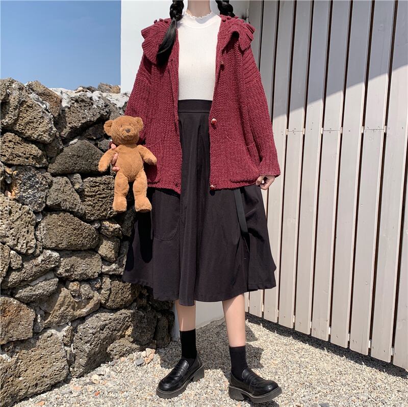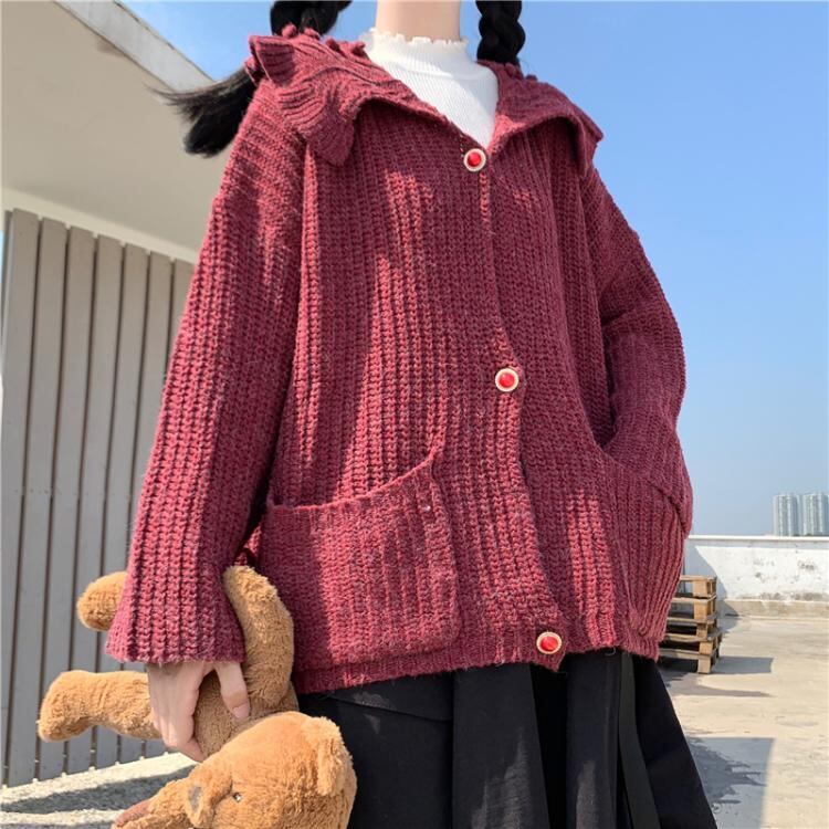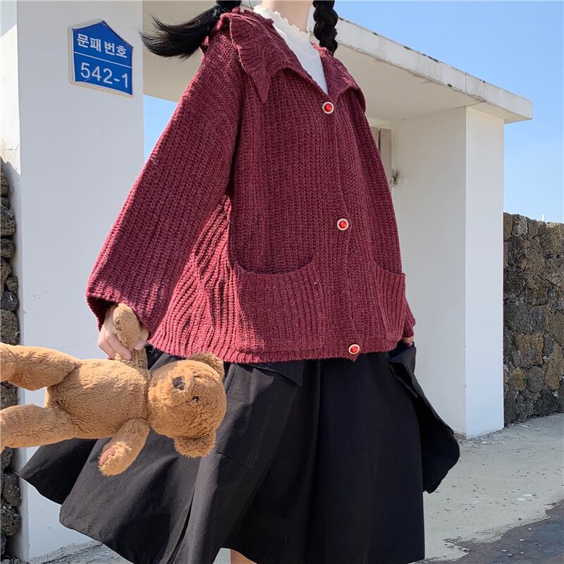 ✞甘め襟つきニットカーディガンセーター ジャケット ウィンター ロング レトロ 秋冬✞ゴスロリ SM ミリ 甘ロリ クラロリ 和ロリ エレガント 黒ロリ 姫ロリ 華ロリ BB-BB99714881439