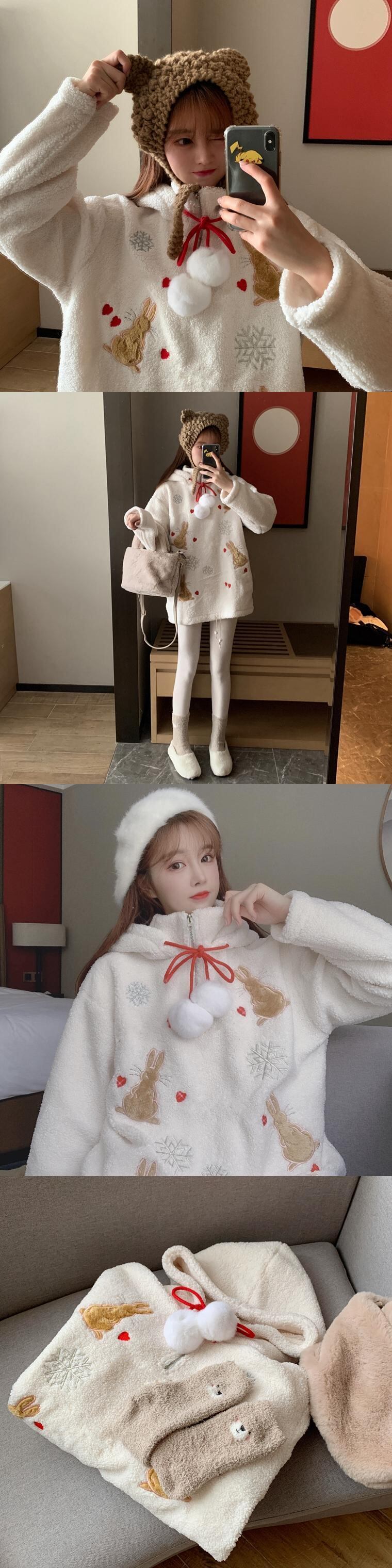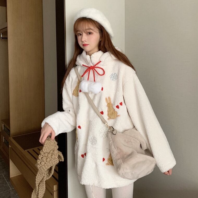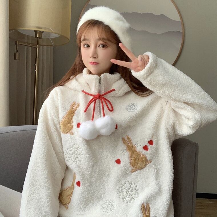 ✞ロリータうさぎ刺繍ベルベットフードプルオーバー ウールセーター 雪の結晶 ウィンター ジャケット 大人女子☆ ガーリー 秋冬✞ゴスロリ SM ミリ 甘ロリ クラロリ 和ロリ エレガント 黒ロリ 姫ロリ 華ロリ BB-BB42477185925