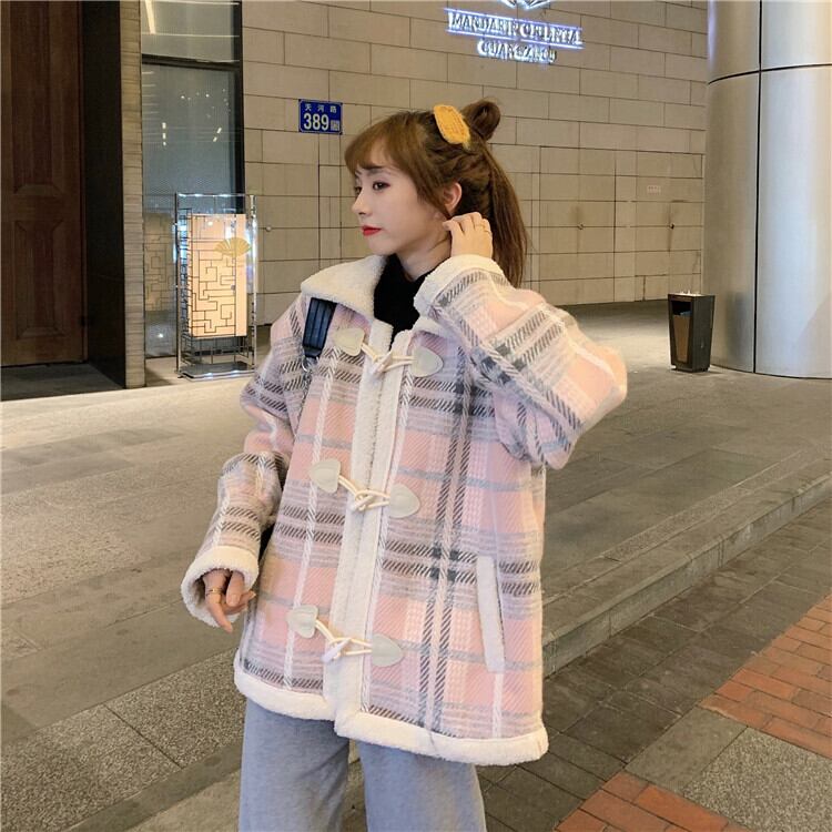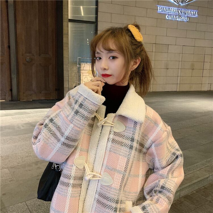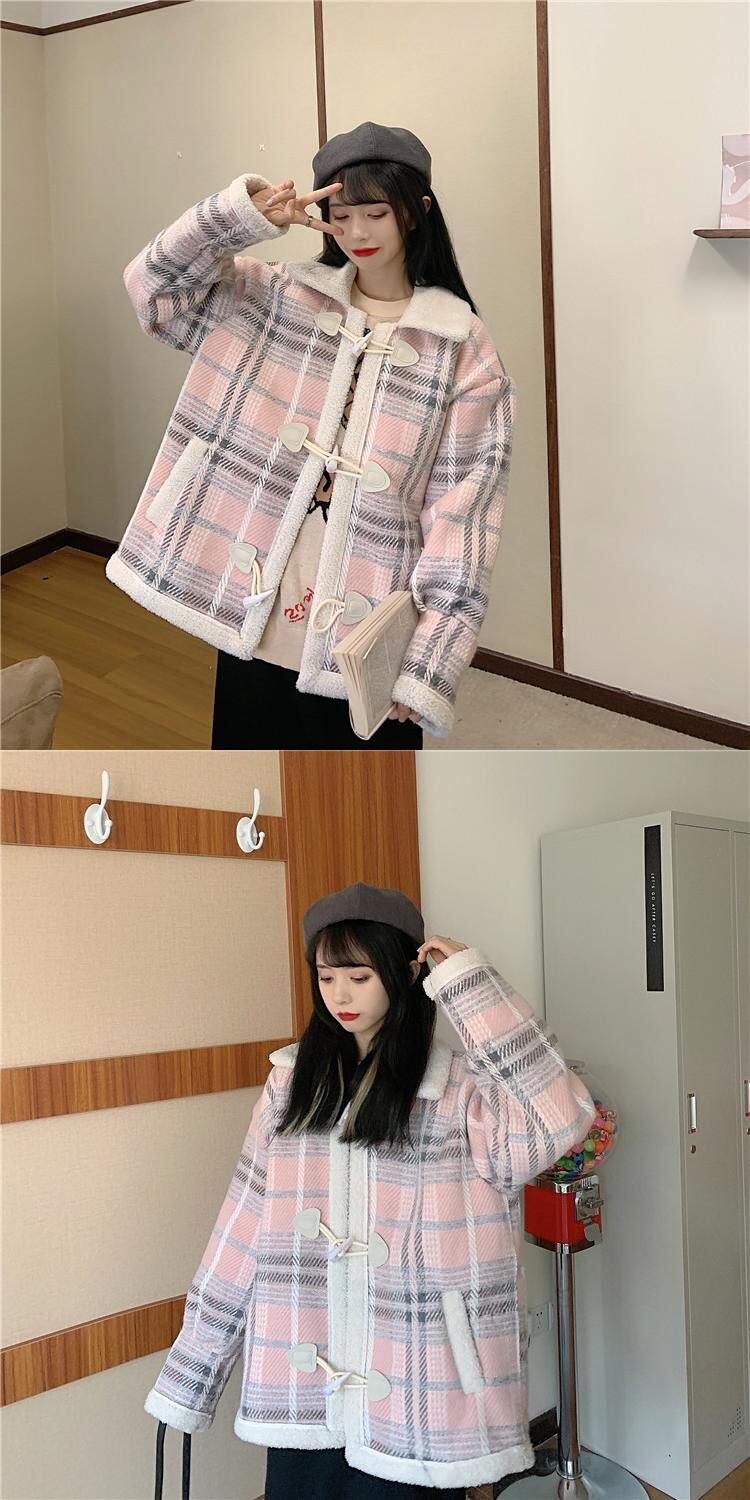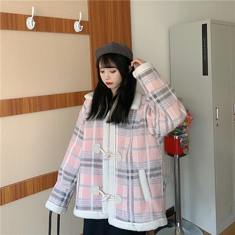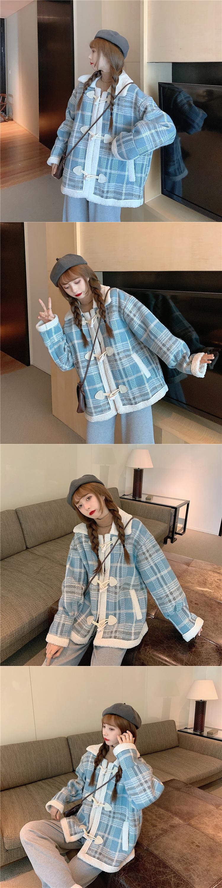✞甘めダッフルチェック柄ショート丈コート ウィンタージャケット バックル ロング レトロ スウィート 秋冬✞ゴスロリ SM ミリ 甘ロリ クラロリ 和ロリ エレガント 黒ロリ 姫ロリ 華ロリ BB-BB43081692639