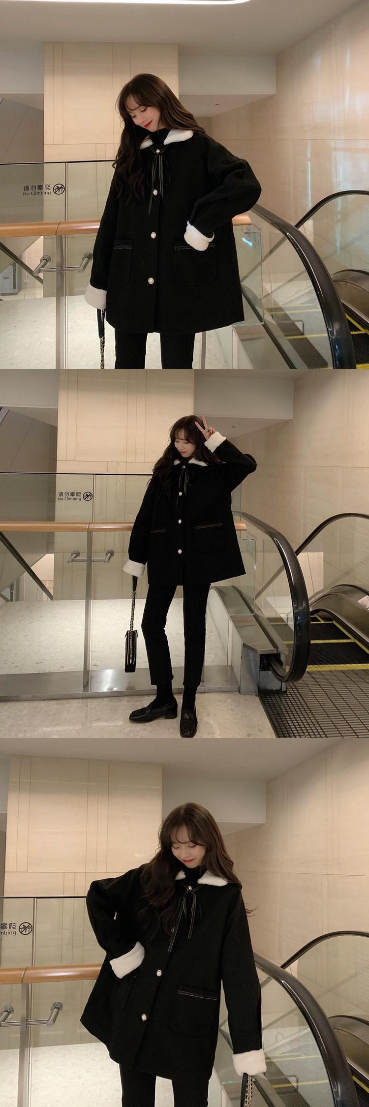 ✞レースファーボタンジャケット ブルゾン ウィンター ロング コットン ガーリー 秋冬✞ゴスロリ SM ミリ 甘ロリ クラロリ 和ロリ エレガント 黒ロリ 姫ロリ 華ロリ BB-BB19118979797