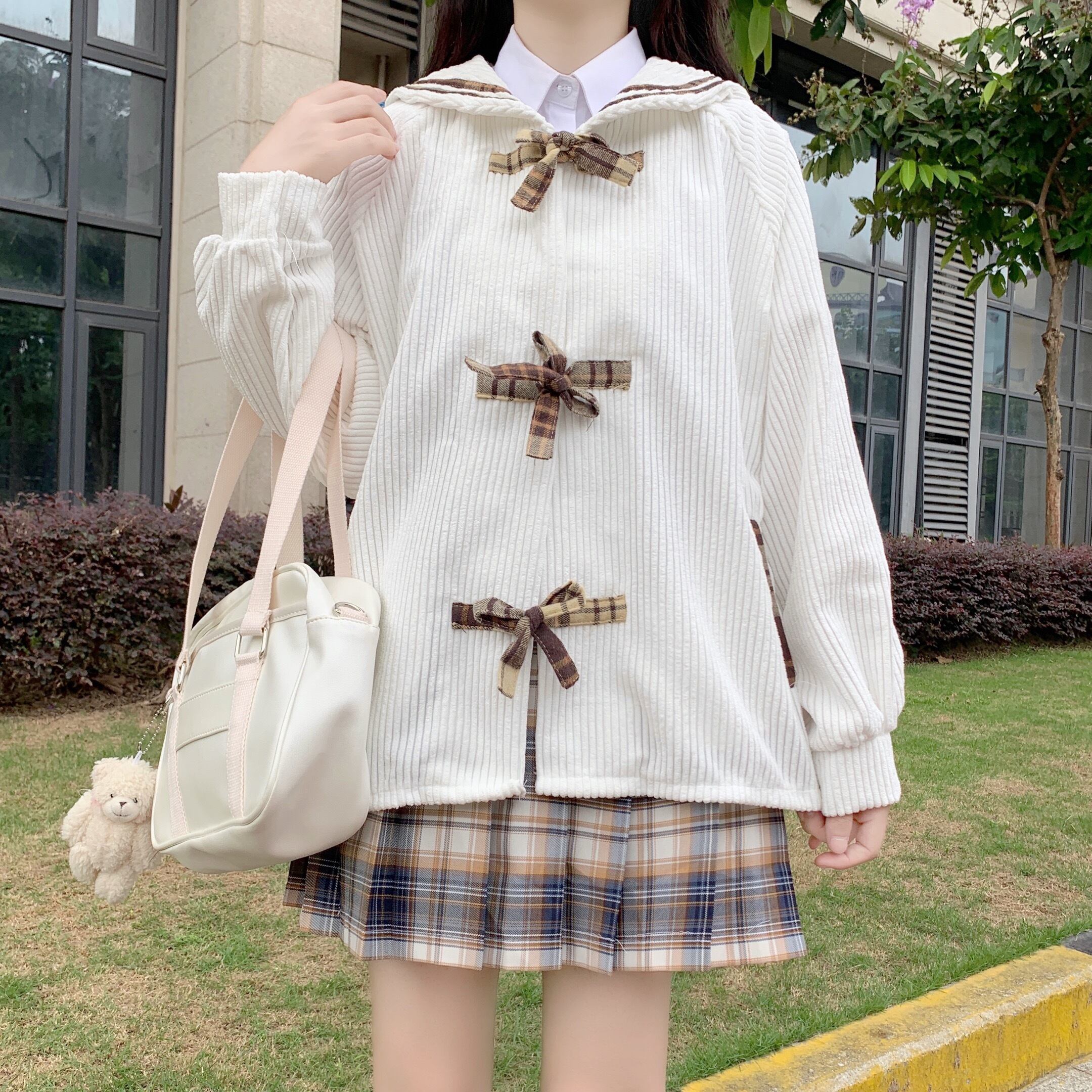 ✞甘めチェック柄りぼんボタン襟つきコーデュロイジャケット ウィンター大人女子☆ ロング 秋冬✞ゴスロリ SM ミリ 甘ロリ クラロリ 和ロリ エレガント 黒ロリ 姫ロリ 華ロリ BB-BB14398042509
