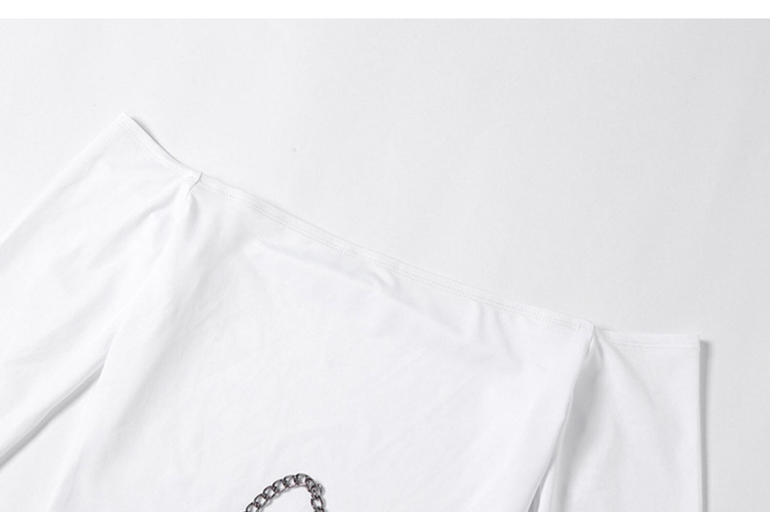 ✞ゴシックロングスリーブチェーンキャミシャツ ストラップレスショートプリント チェーン トップス ロング ホワイト ✞✝✞ ゴスロリ SM ミリ 甘ロリ クラロリ 和ロリ エレガント 黒ロリ 姫ロリ 華ロリ AA-AA83196109194