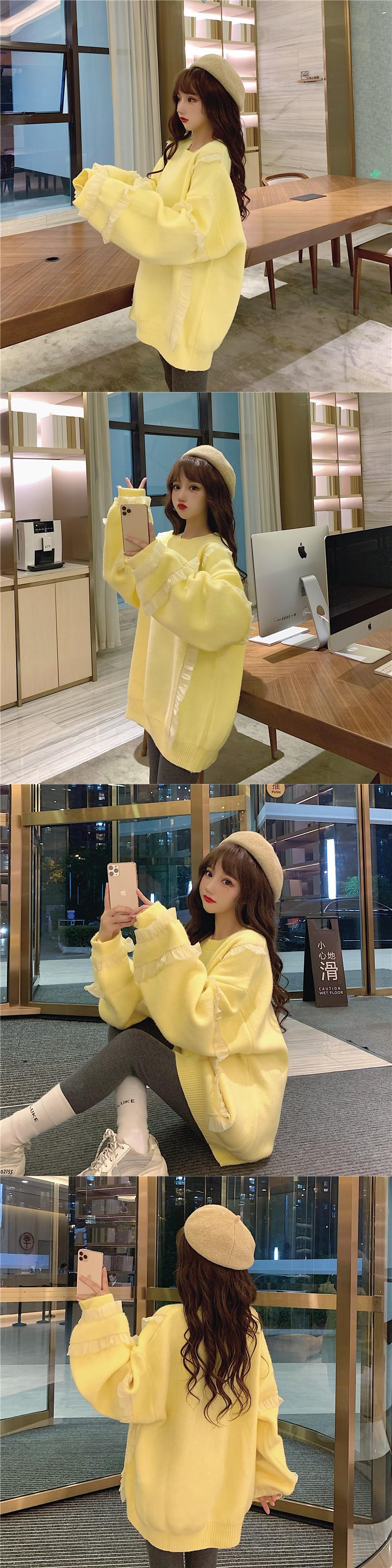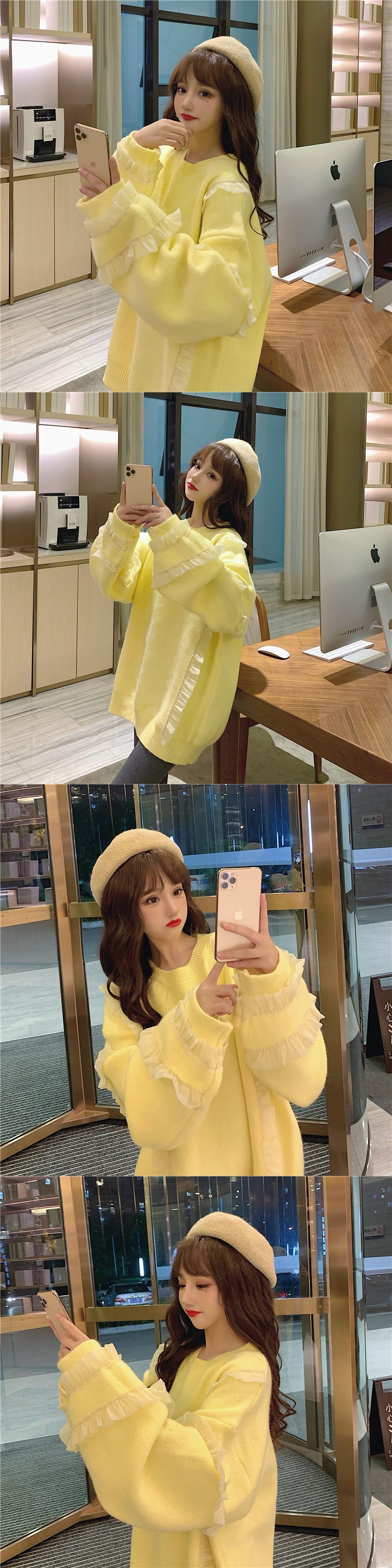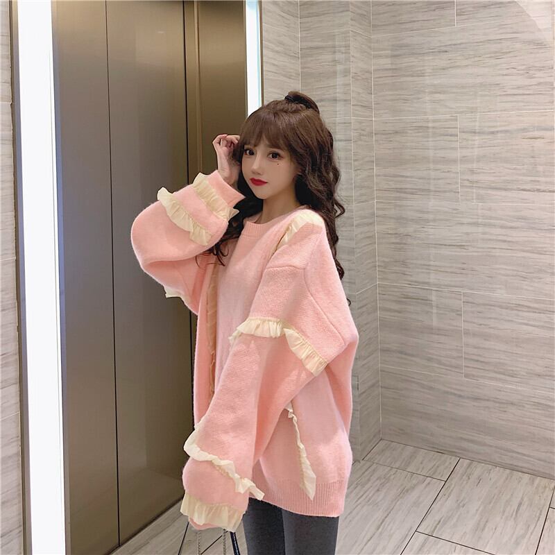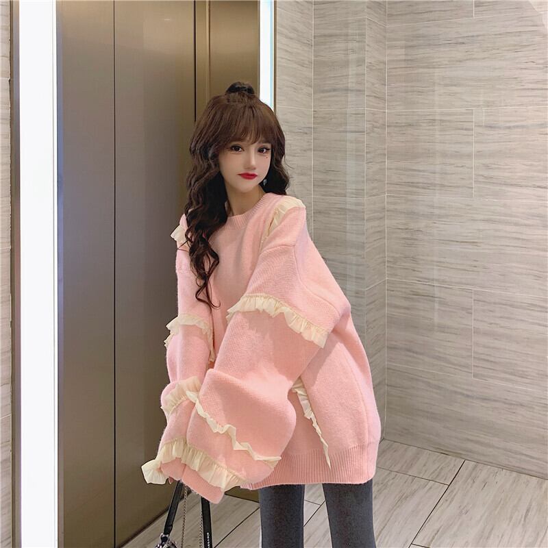 ✞ロリータオーバーサイズフリルティアードニットセーター ラウンドネック プルオーバー トップス ウィンター 秋冬✞ゴスロリ SM ミリ 甘ロリ クラロリ 和ロリ エレガント 黒ロリ 姫ロリ 華ロリ BB-BB23322888723