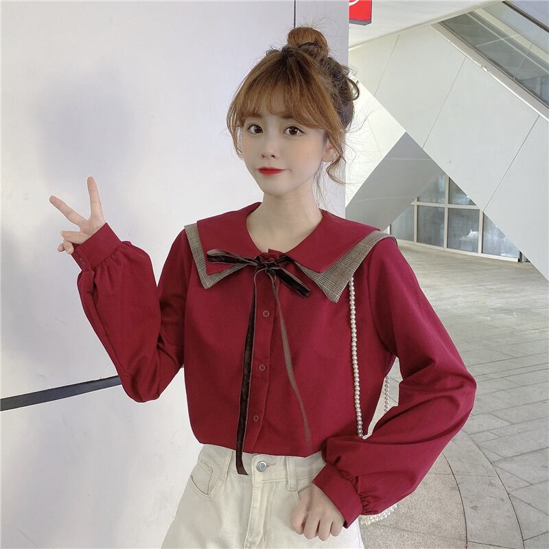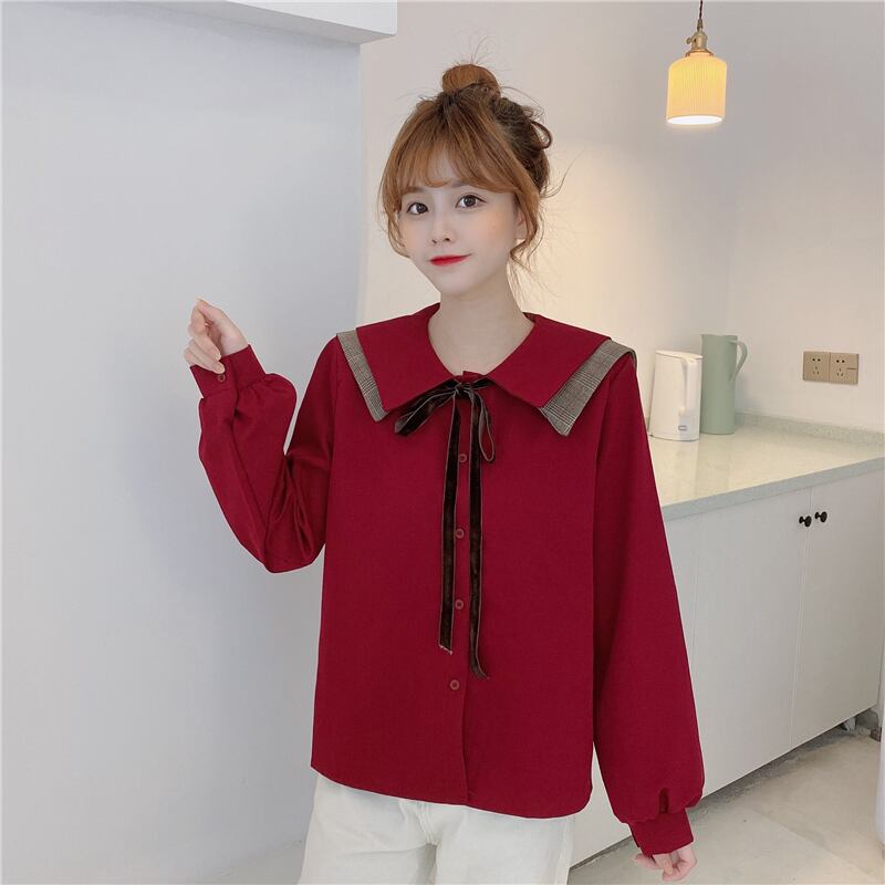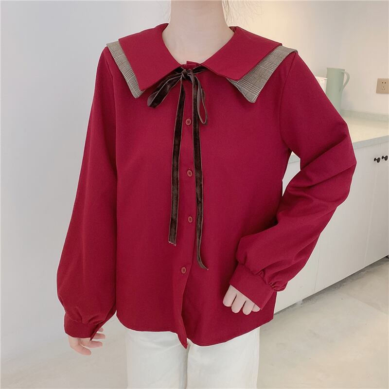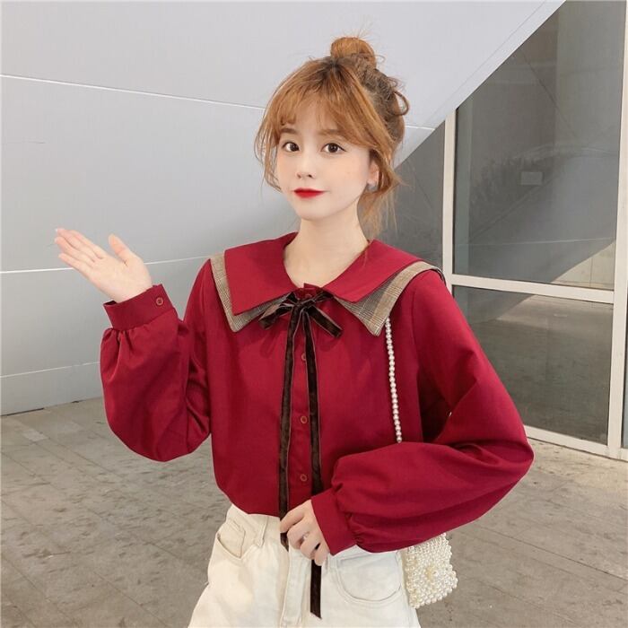 ✞甘めレースりぼん襟付きパフスリーブシャツブラウス 大人女子☆ウィンター ロング レトロ 秋冬✞ゴスロリ SM ミリ 甘ロリ クラロリ 和ロリ エレガント 黒ロリ 姫ロリ 華ロリ BB-BB3331730425