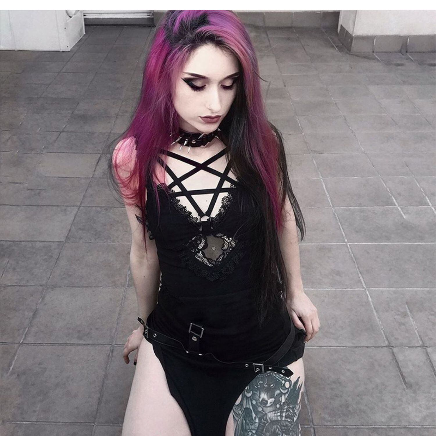✞ゴシック ブラックダークスリムVネック編み上げメッシュキャミトップス ステッチ JK制服 春夏秋冬 ✞✝✞ゴシック ゴスロリ SM ワンピース 黒 靴 大きいサイズ タイツ ヘッドドレス スカート バイブル 雑誌 本 タイツ アクセサリー ミリロリ 甘ロリ クラロリ 和ロリ エレガント 黒ロリ 姫ロリ 華ロリ AA-AA80189354642