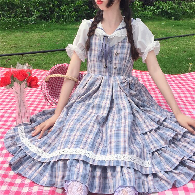 ✞ロリータJK制服 格子柄フリルワンピースドレス 薄手 サマー 夏物 春夏秋冬 ✞✝✞ゴシック ゴスロリ SM ワンピース 黒 靴 大きいサイズ タイツ ヘッドドレス スカート バイブル 雑誌 本 タイツ アクセサリー ミリロリ 甘ロリ クラロリ 和ロリ エレガント 黒ロリ 姫ロリ 華ロリ BB-BB90871332066